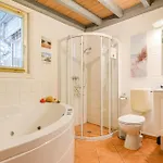 W łazience znajduje się gorąca kąpiel i prysznic.